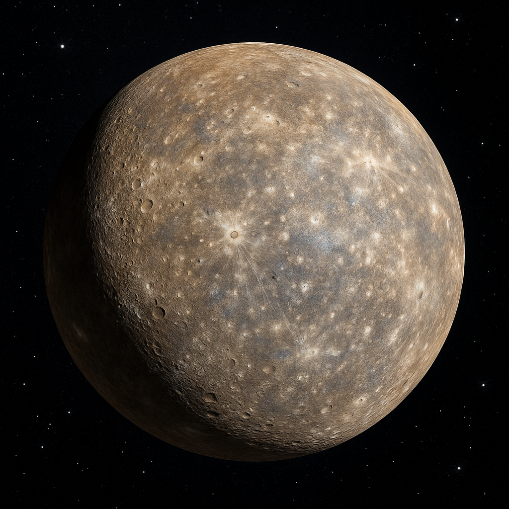 | 표면 지형 | 칼로리스 분지, 홀로우, 수축 단층 등 |
